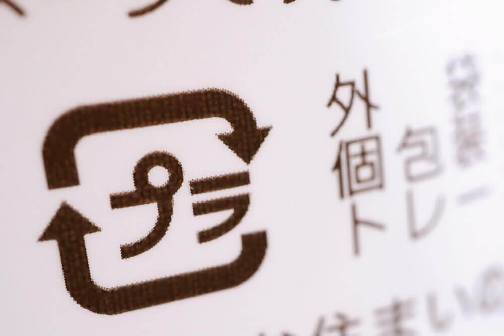 例えば袋状の包装では表面に印刷、ボトルなどではラベル部分に表示されるのが一般的です。消費者が分別時に迷わないように、視認性を確保することが重要なポイントとなります。